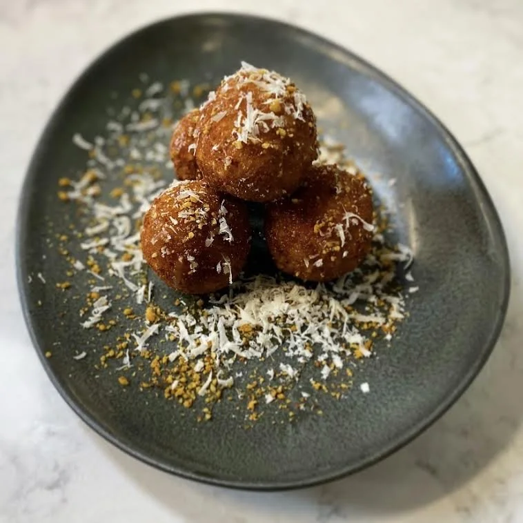 Fried Rice Balls. Delicious and such an easy way to use up leftover rice--or here, we use the Risotto from our Featured Recipe. When Chef was in the restaurant, this recipe was one of his top appetizer sellers. Now you can create the magic at home