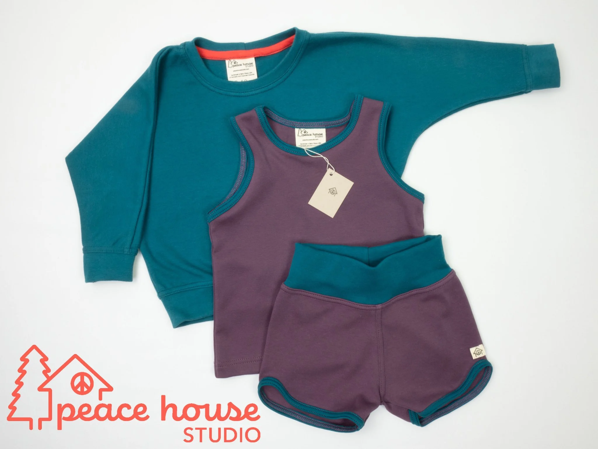 Our clothing is handmade, fun, functional, and of the highest quality. All clothing is manufactured in Bath, Maine by Peace House Studio and can be returned at any time for store credit or cashback to our Patches Project.
